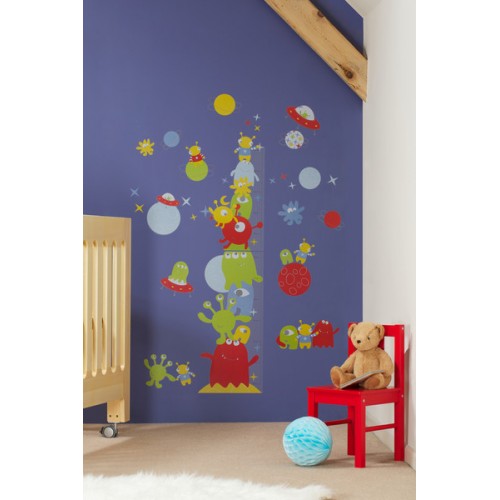 Centimeterček na metru The Alliens, ogromen poskok na metru rasti naših malčkov! Nekega dne bodo segli med zvezde, a vse se prične s prvimi centimetri. Kratki za človeka, a vendar dolgi za naše najmljaše - nalepke za steno, meter za odmerjanje višine otrok. Prikupne nalepke Vam služijo tudi za merjenje višine vašega otroka.